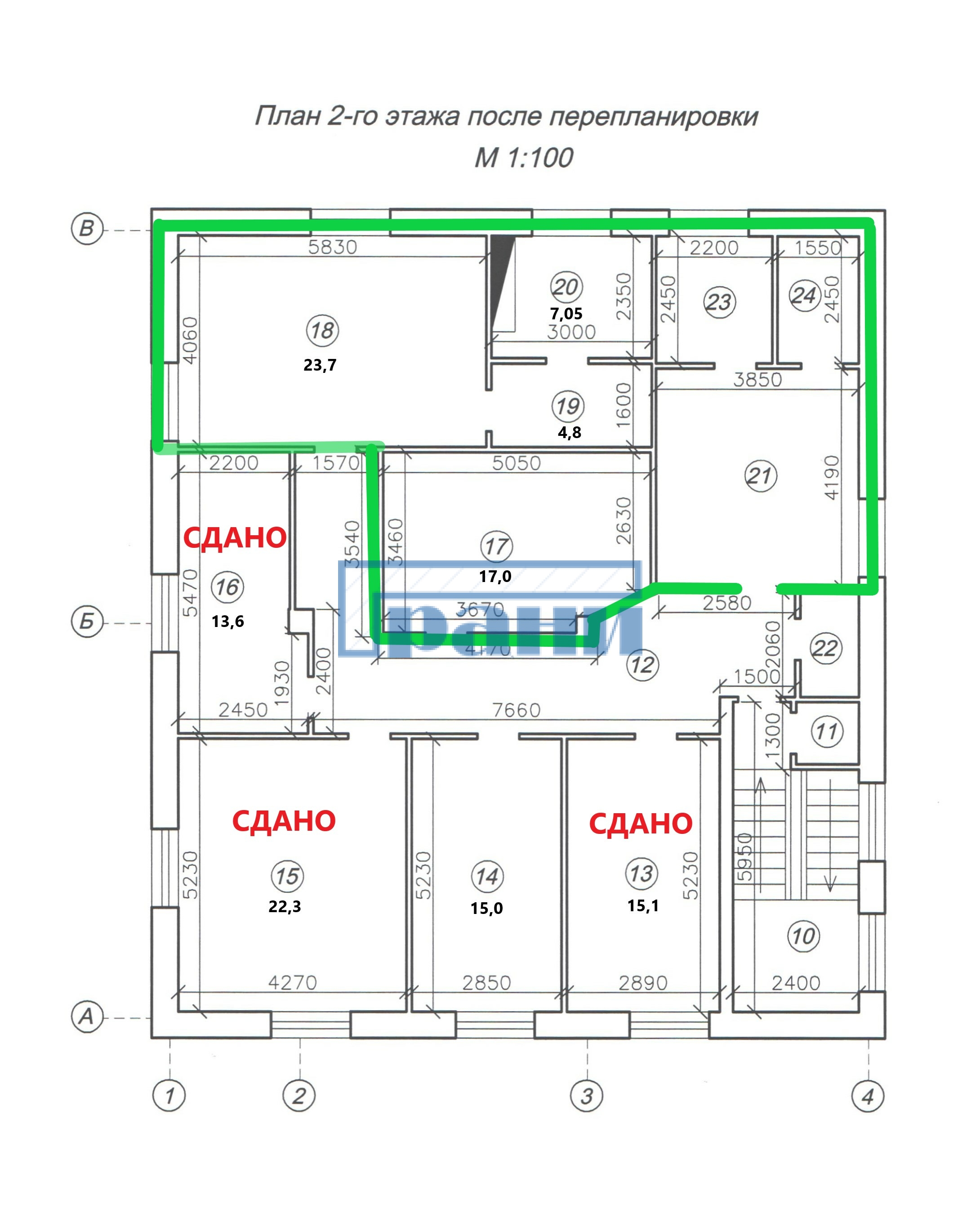 Светлые помещения, правильной формы;