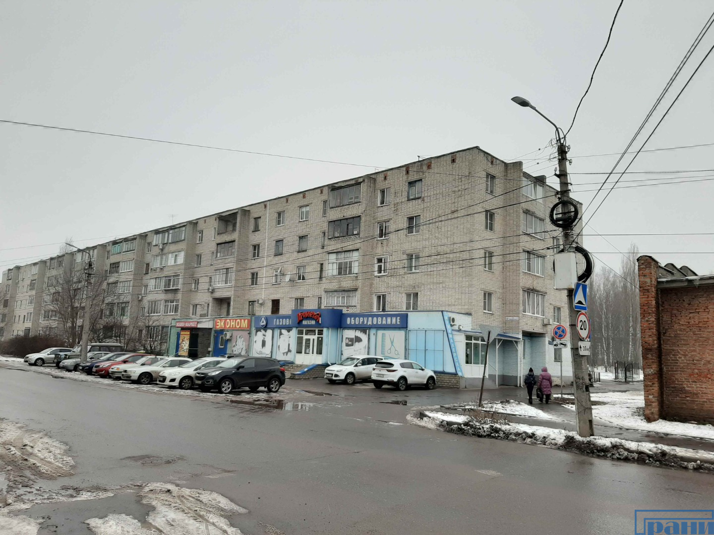 Фасад смотрит на сквозную дорогу в спальный район;